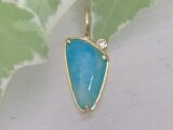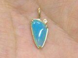 グッと視線を引き付ける目が覚めるようなネオンブルーのアリゾナ産ジェムシリカに煌めくダイヤモンドを添えたアンティーク調K18topです*果てしなく長い年月を経てクリソコラと石英が融合した鉱物の神秘。。カボションフリーフォームルース、台座はアンティークマット仕上げ*