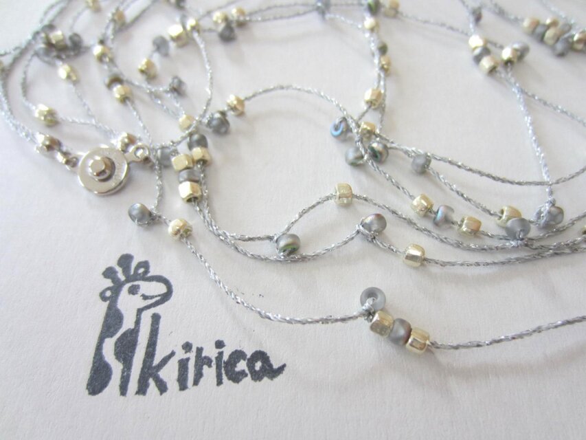 ラメの糸で作られた、華奢な2連のネックレスです。
