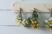 自家製ドライフラワーを古材風に加工した板にセットしました。