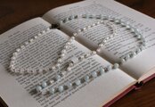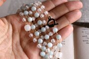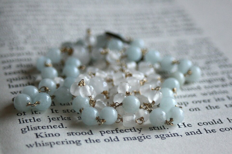 ヴィンテージビーズと、天然石アクアマリンでお作りした