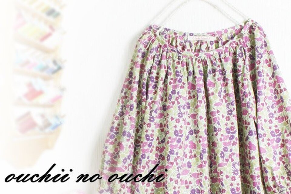 リバティ・タナローン大人気柄英国リバティPoppy & Daisy ポピー&デイジーでネックボタンラグランロングギャザーブラウスを作りました。