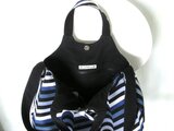 2wayトートバッグ*リボンブローチ付き(ブルーストライプ)