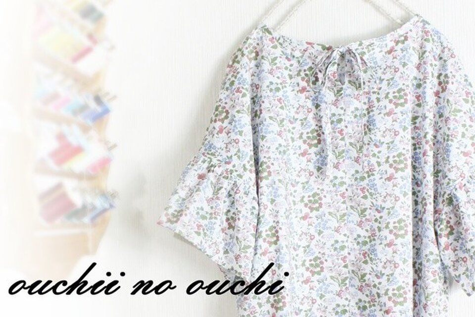 ナンシーアン Nancy Ann 柔らかミルキーブルー&レッド系でギャザースリーブのフレンチブラウスを作りました。