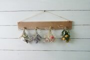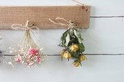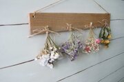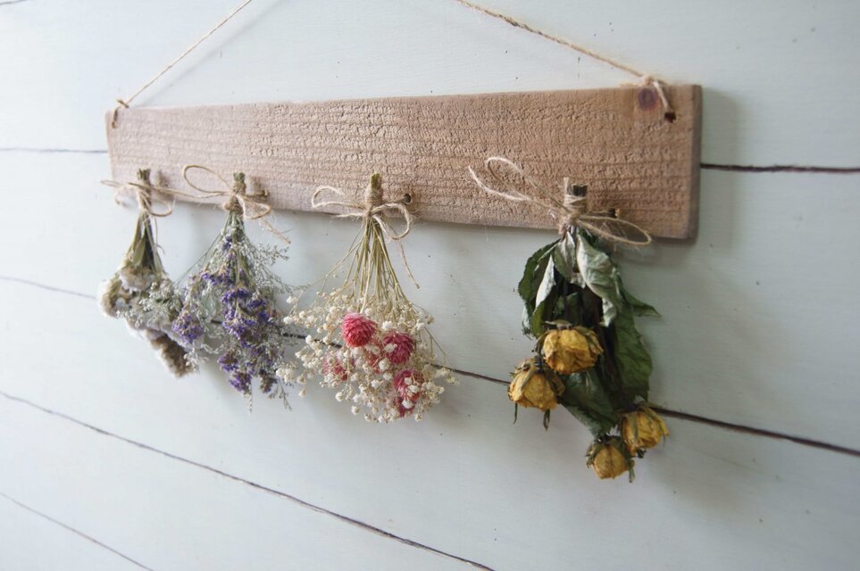 自家製ドライフラワーを古材風に加工した板にセットしました。