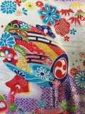新作手作り半袖和柄シャツ(折鶴に毬と花模様)