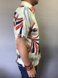 新作手作り半袖和柄シャツ(熨斗目模様)生成り