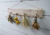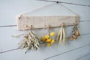 自家製ドライフラワーを古材風に加工した板にセットしました。