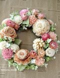 ソフトグリーンをミックスして、やさしい雰囲気のリースをつくりました。
