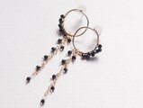 花の環のシリーズ、新作はブラックスピネルを使用したピアスです。