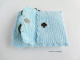 手抜き無しの細編み仕様でずっしりと重みを感じます。いろんな色の薔薇を見て頂けるように、季節に合わせてスカイブルーで作りましたが、ギャラリー内の他の色でも受注制作を承ります。