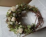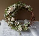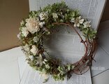 採れたてのミントグリーンアナベルと白のソラフラワーを組み合わせた長い間お楽しみ頂けるWreathです。
