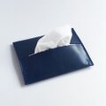 上質な素材感が引き立つ紺色のレザーを使用したポケットティッシュカバーです。