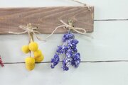 自家製ドライフラワーを古材風に加工した板にセットしました。