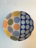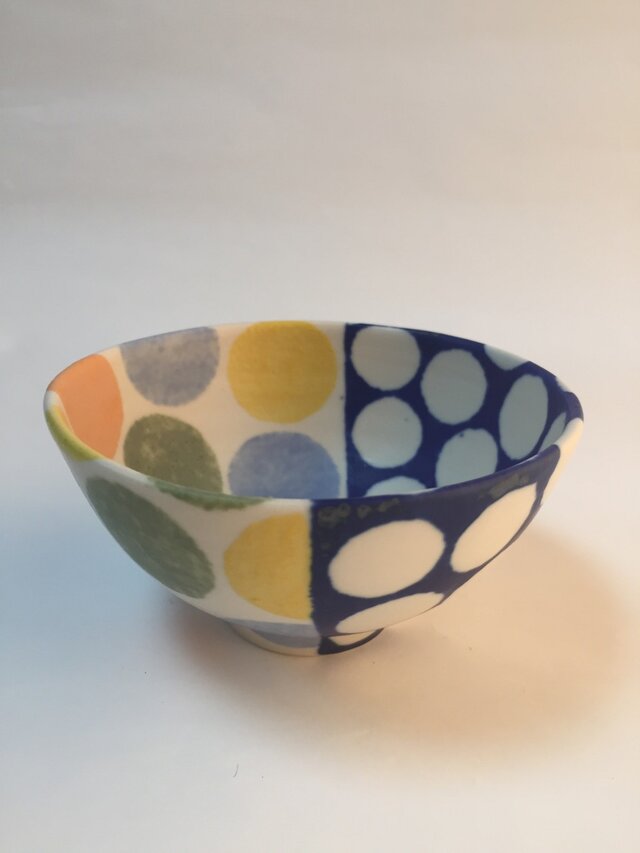 ロクロで成形し釉薬の下の絵付けです。すべて手作りなので多少の歪みやピンホールなどはご容赦下さい。