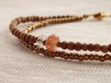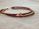 qua : 白檀(約2mm丸玉)、サンストーン(約3×5mm)、水晶、ビーズ、メッキ金具、ワイヤー