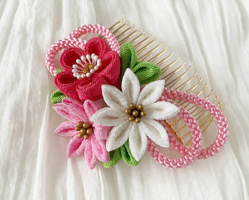 梅1輪と小菊2輪と江戸打ち紐のコームです。