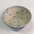 蕎麦ちょこシリーズ カラフル水玉とブルー地に白のラインの蕎麦猪口を作ってみました。