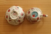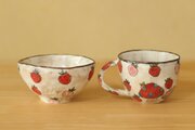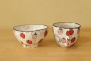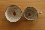 A様オーダー分粉引きてびねりいちごとりすのカップとお茶碗。