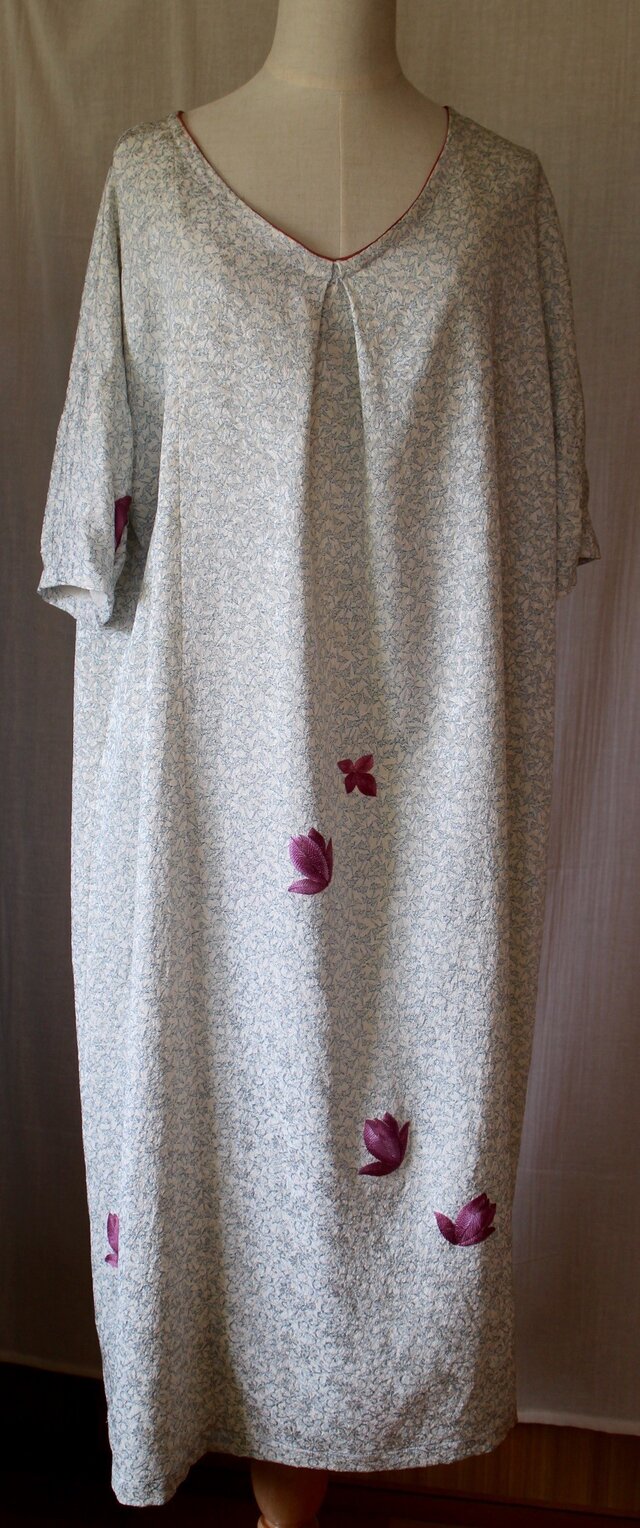 小花の紫と襟ぐりのピンクがポイントです!