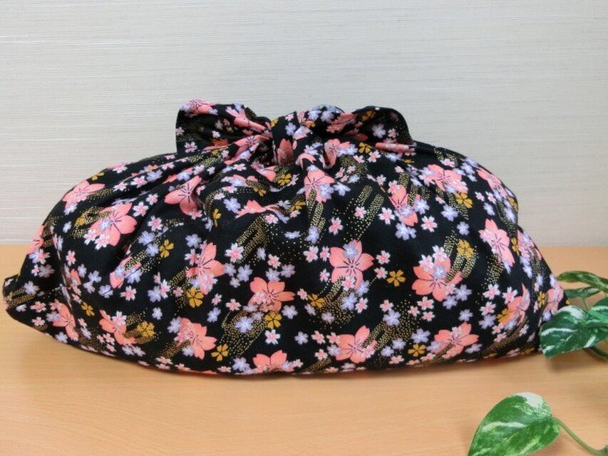 あずま袋(大サイズ)和風金彩黒地桜柄 ファスナー無しのバッグインに