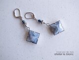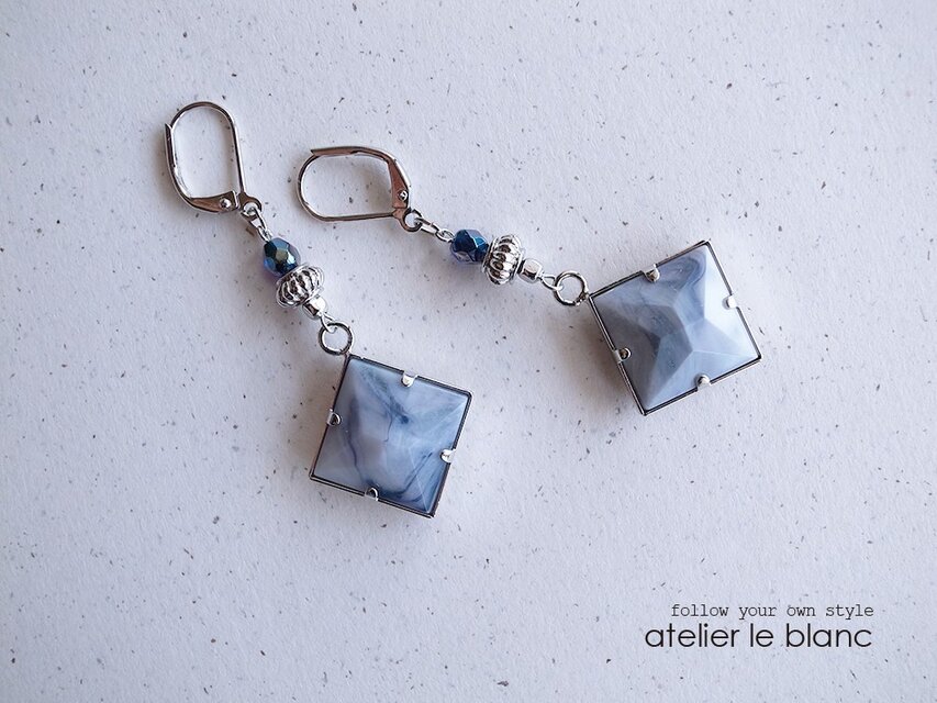青味がかったモノトーンのマーブル模様が目をひくピアス。