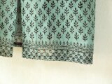 アイスミント(ブルーグリーン)色の生地に、黒が小粋に効いた木版の更紗です。
