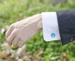 手描きの絵を樹脂で閉じ込めたカフスです。