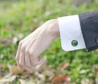手描きの絵を樹脂で閉じ込めたカフスです。