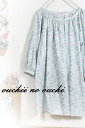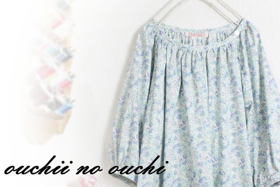 リバティ・タナローン人気柄リバティClaire-Aude クレア・オードグリーン&ブルー系でネックボタンラグランロングギャザーブラウスを作りました。