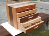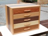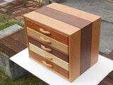 引き出しの前板は・・上からカリン・ビーチ・ウォールナッツ・トチ・チーク