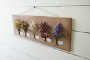 エイジング加工した古びた味のある板に自家製ドライフラワーを標本風に貼り付けました。