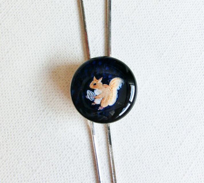 りすとひまわりの種を描いた絵(原画)を樹脂でとじこめたループタイです。