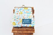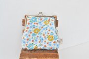 表地はブルー系・小花柄キルト生地、裏地はブルー系小花柄生地でがま口はシルバーの100ミリを使用しています。
