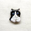ねこ (ハチワレ2016)の七宝焼ミニブローチ 【受注制作】