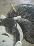 この作品がレリーフ陶板の第一作目であり、焼き上がりにも満足できるものになりました。この後、写楽、風神雷神を作陶します。
