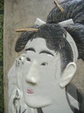 浮世絵レリーフ陶板・歌麿「汗を拭く女」