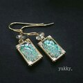 京都オパール(胡粉ごふん)のフレークをレジンに閉じ込めてピアスを作りました。(*^^*)