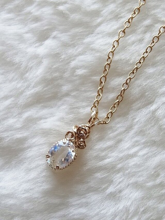 ホワイトラブラドライトを、14kgfワイヤーで爪留めいたしました。