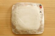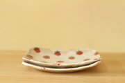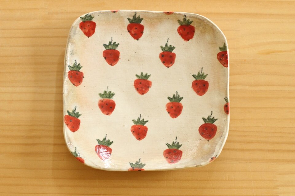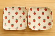 信楽の白土に白化粧を施し赤のいちごをたくさん絵付けしました。