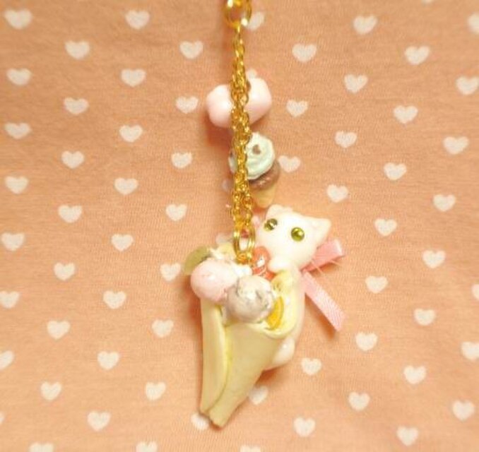 にゃんこのしっぽ○クレープのストラップ○白猫○スイーツデコ