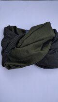 濃いグリーンの色合いが素敵な、ネックウォーマーです。