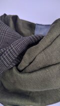 通常のネックウォーマーより、生地を多めに使い、肌寒い季節も使って頂けるように作りました。