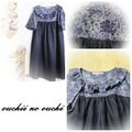 オーバーで胸の上の切り替えが優しい雰囲気のシルエットをつくって素敵です。またリバティで襟元の巻きロックフリル仕上げにしておりますので