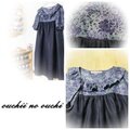 しっとりリネンネイビーとリバティタナローン人気柄Rossellieロッセリー ネイビーブルー系 でお作りしましたヨーク切り替えドルマンスリーブのチュニックワンピース 巻きロックフリル仕上げです。