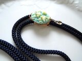 (968)大人気☆ループタイ☆アクリルカメオ『小鳥のさえずり』と宝石質ルチルクォーツ☆ペアシェイプブリオレットカット。・。・