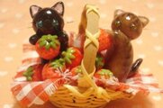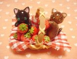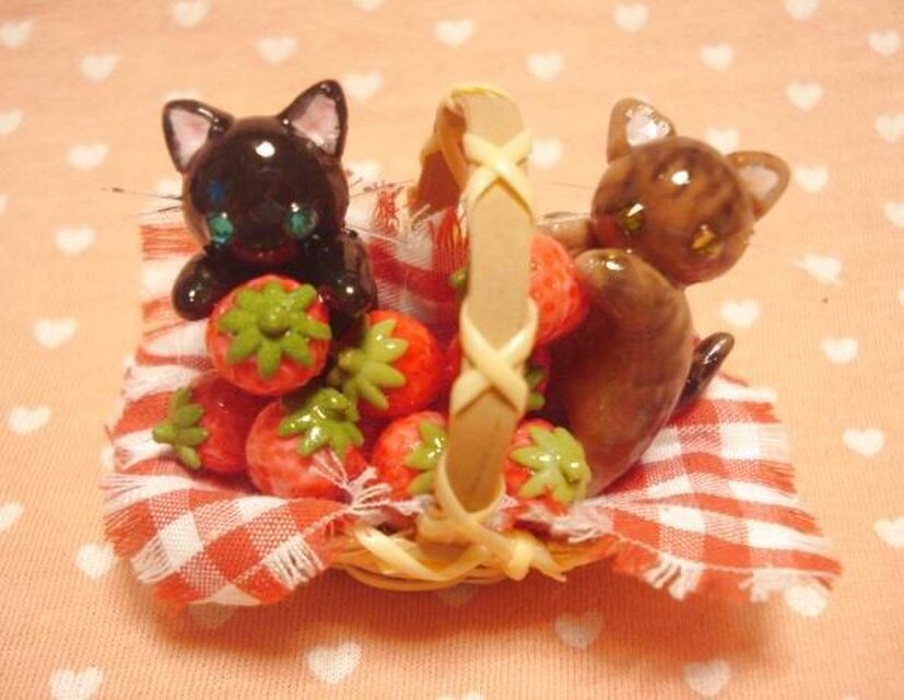 なかよしにゃんこがいちご摘み