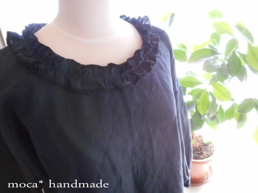 フレンチリネンを使用した、後ろ開きブラウス(プルオーバー)です。