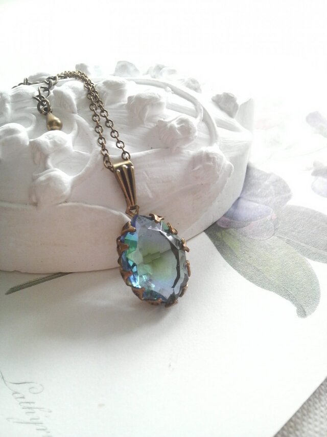 WestGermanヴィンテージ、約18×13ミリの変形オーバルカットのレアなグラスストーンでお作りしましたネックレスです。