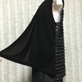 後ろ身頃 : 箔がプリントされたフリルが段になって付いた薄手黒ニット生地・透けます