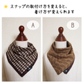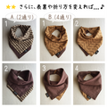 スナップの取り付け方によって着け方が変えられ、さらに表裏や折り方を変えれば2通り(A)、4通り(B)に♪